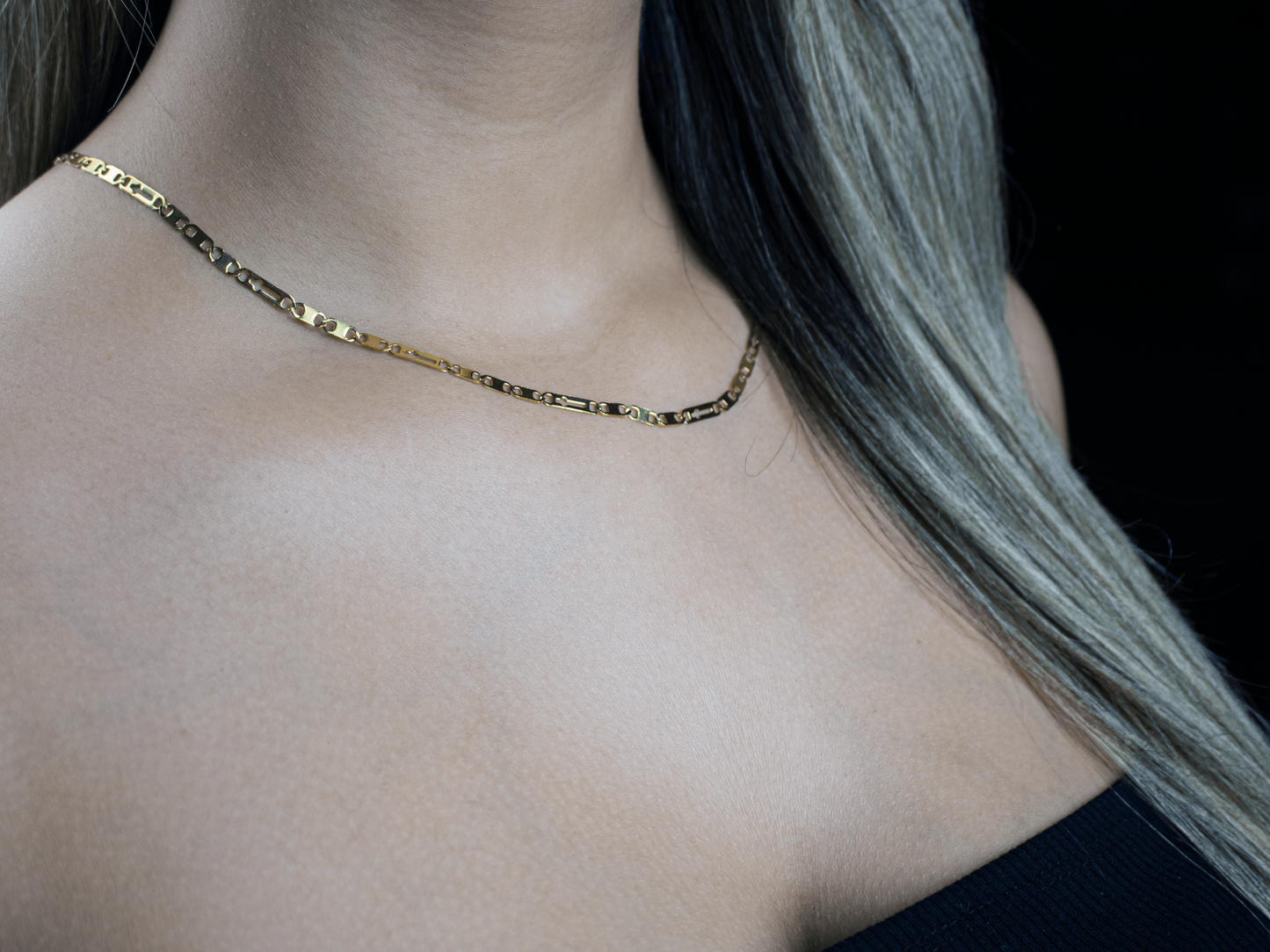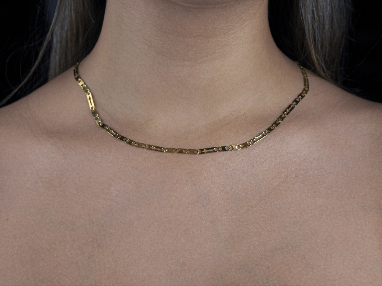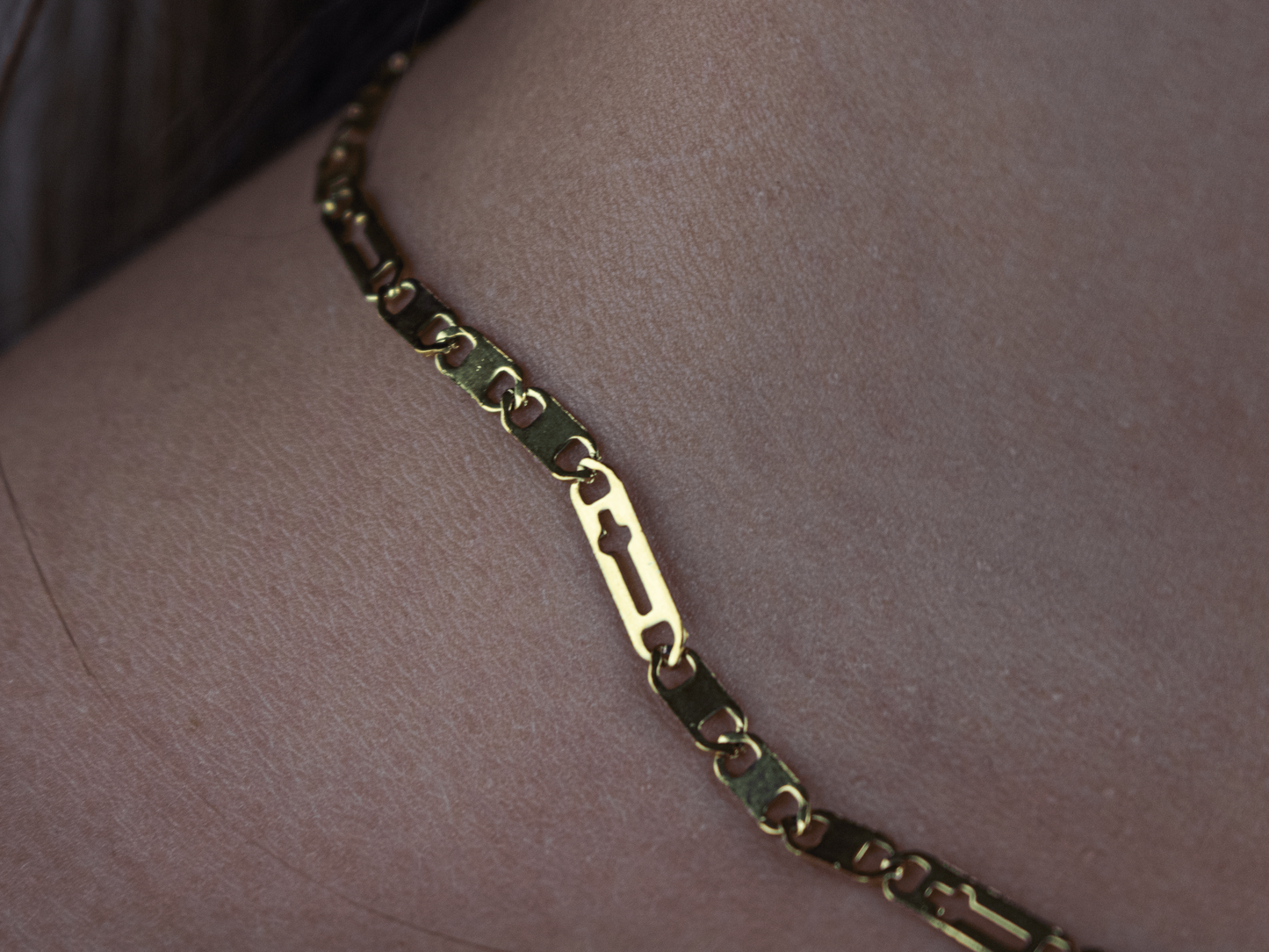 Introducing the Cross Chain Flat, available in both 18k gold and white gold stainless steel. This unique flat chain features intricate details, with a cross design incorporated into each link, making it a truly distinctive piece. Its meticulous craftsmanship ensures that every element stands out, resulting in a necklace that is both elegant and rare. Perfect for making a statement or adding a touch of spirituality to your outfit, the Cross Chain Flat is versatile for any occasion. Elevate your jewelry collection with this stunning and meaningful accessory!