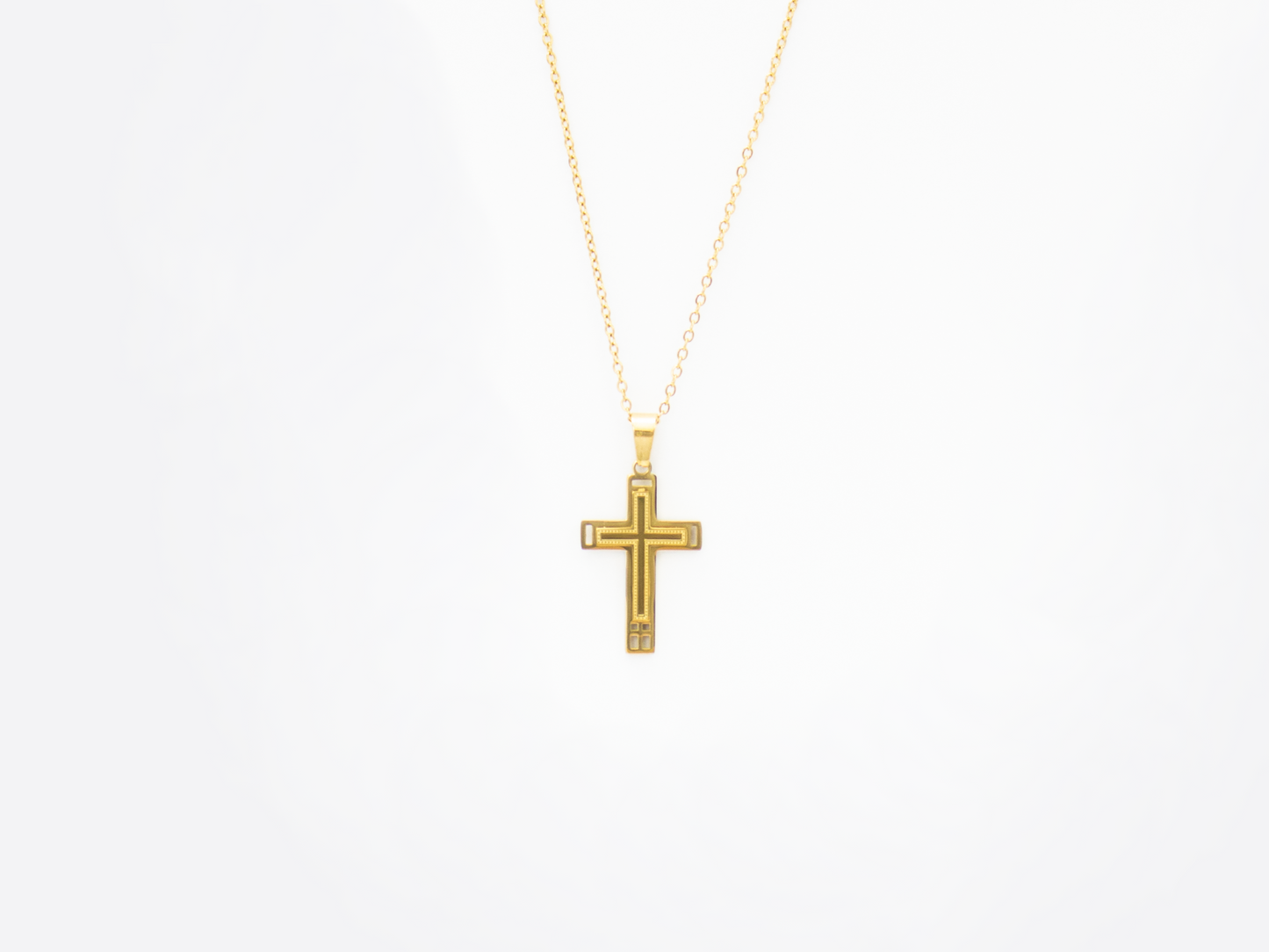 The Fine Detailed Cross, a beautifully engraved cross crafted from 18k gold stainless steel. This exquisite piece showcases intricate detailing, making it a striking accessory for any occasion. It comes complete with a matching chain, ready to wear or gift. Elevate your style with this timeless and meaningful piece!