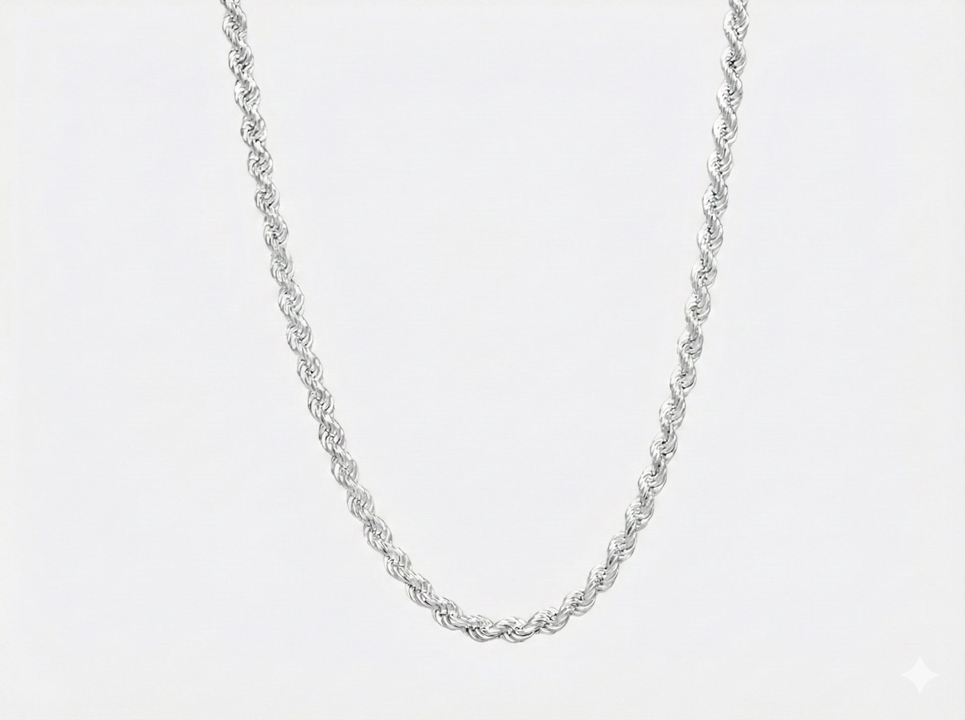 The rope chain 925 is the classic design that beautifully complements any pendant! Made from genuine 925 sterling silver, this durable chain shines brilliantly. Its timeless style makes it a versatile addition to your jewelry collection, perfect for everyday wear or special occasions.